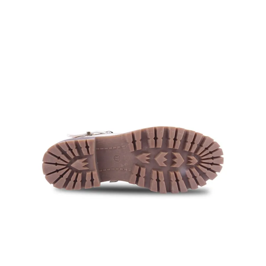 Bota em pele, estilo militar para senhora.