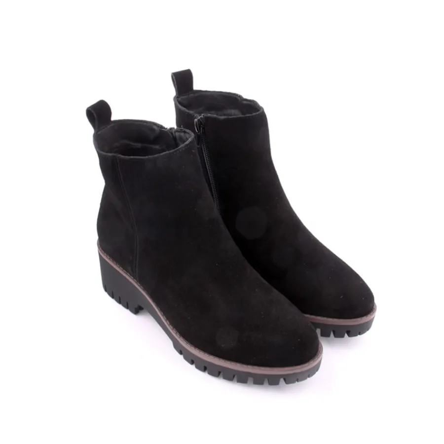 Botim em camura para senhora. Salto com 5,5cm de altura.
