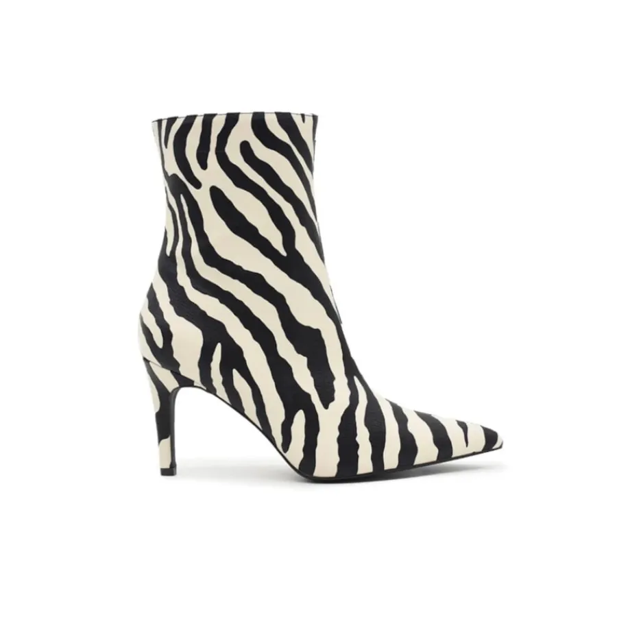 Inspire-se com o último estilo da moda neste inverno! Esta bota zebra com salto fino preto e branco e fecho lateral interno é o sapato perfeito para um look moderno. Combine as linhas de passadeira com todos os seus looks modernos para oferecer uma elegância única e fresca!Altura da cana 19,5 cm Altura do salto 8 cm