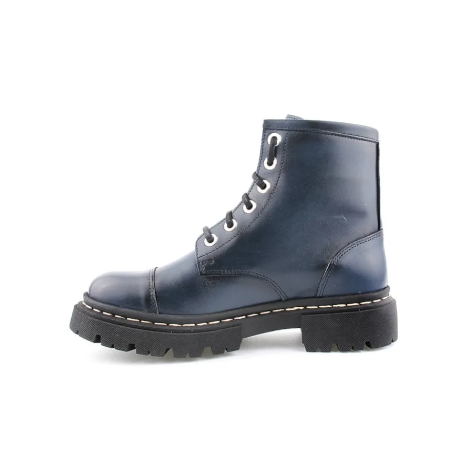 Botim em pele para senhora. Disponível nas cores azul, camel, preto e verde.