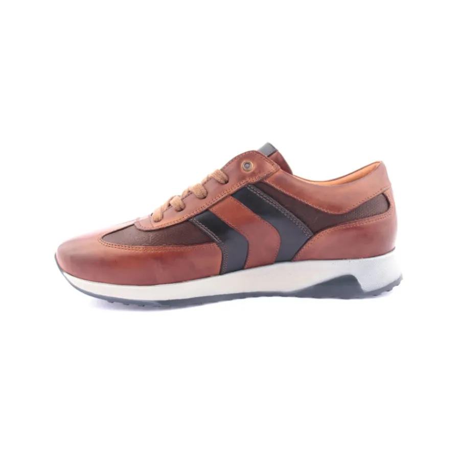 Sapatoem pele, estilo casual desportivo, para homem.
