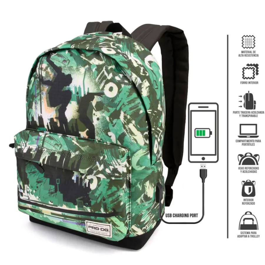 Mochila com encosto acolchoado e respirável. Divisor acolchoado para portátil. Porta USB para carregar telemóvel com power bank (não incluído). Alças acolchoadas ajustáveis. Medidas 30x44x20cm