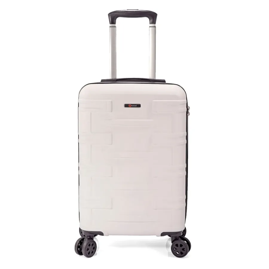 Mala rigida com 4 rodas duplas multidirecionais (rotação 360º).Dimensões: 45x67x32cm