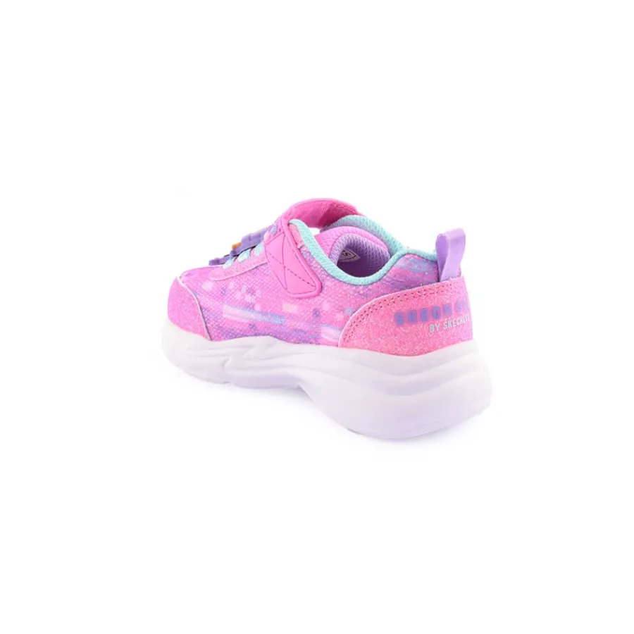 Brilhe e brilhe com seus personagens favoritos do Skech Squad com o Skechers Snuggle Sneaks – Skech Squad. Este design temático de personagem apresenta um cabedal sintético e tecido com acabamento brilhante, cadarços elásticos, pingente de cadarço do personagem, fecho adaptável Skechers e palmilha acolchoada e confortável. Chaveiro bônus do personagem Skech Squad incluído como brinde na compra.