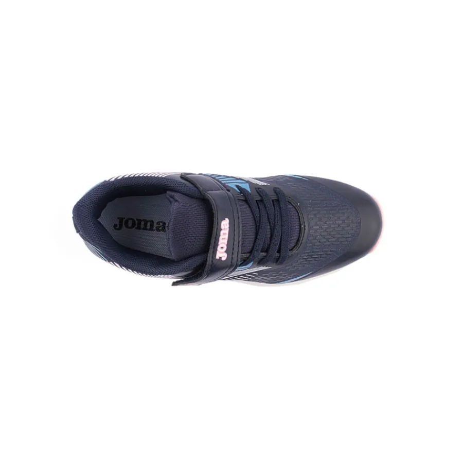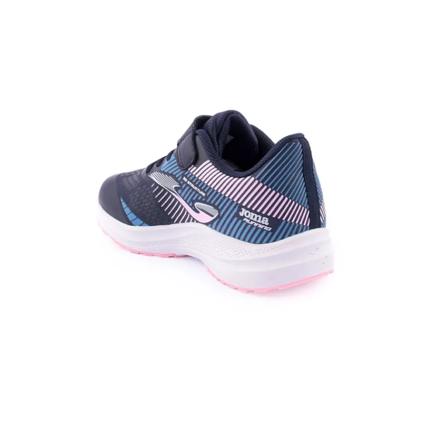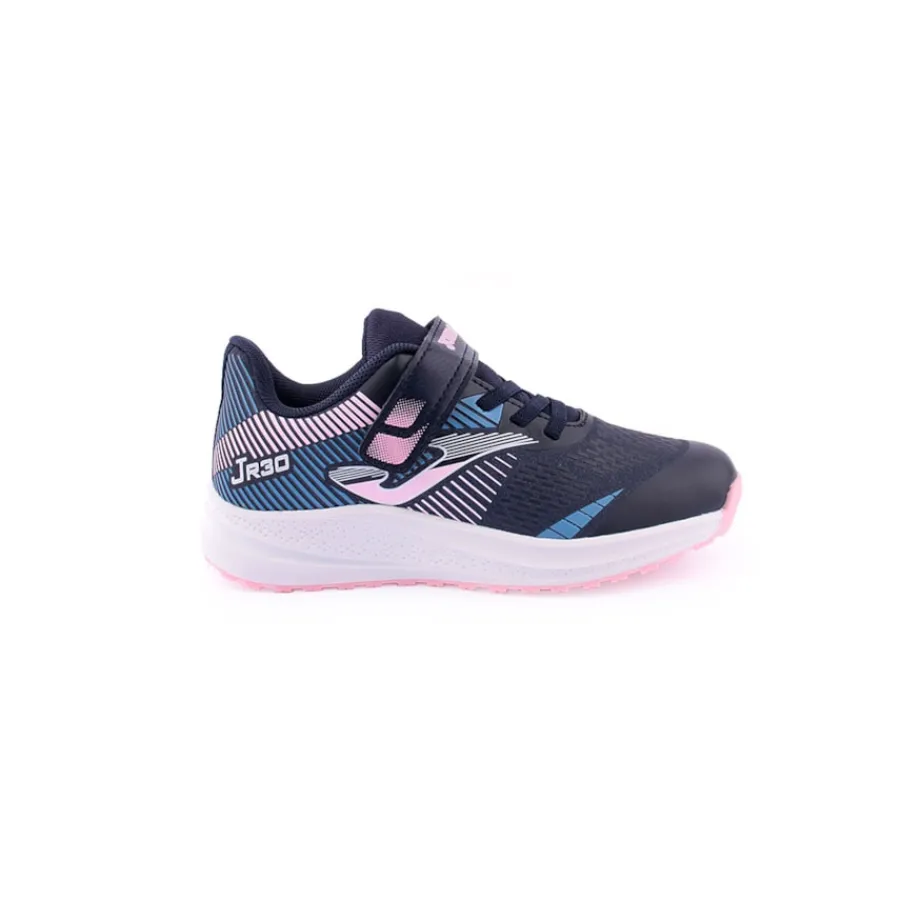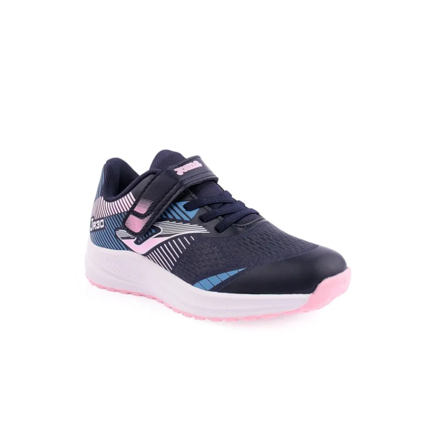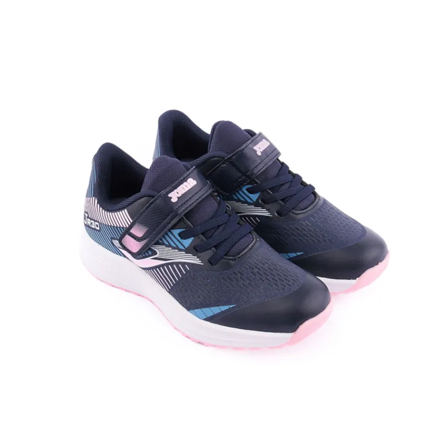 Calçado desportivo de menina com design desportivo e moderno em azul marinho combinado com rosa que são muito populares para combinar com a roupa desportiva da sua filha.Os tênis femininos são confeccionados com um material superleve para dar a sensação de andar descalça e maior conforto ao caminhar.Além disso, a biqueira é reforçada para reduzir o desgaste e prolongar a sua durabilidade.O cabedal é confeccionado em nylon respirável, a palmilha é confeccionada em EVA liso e a entress