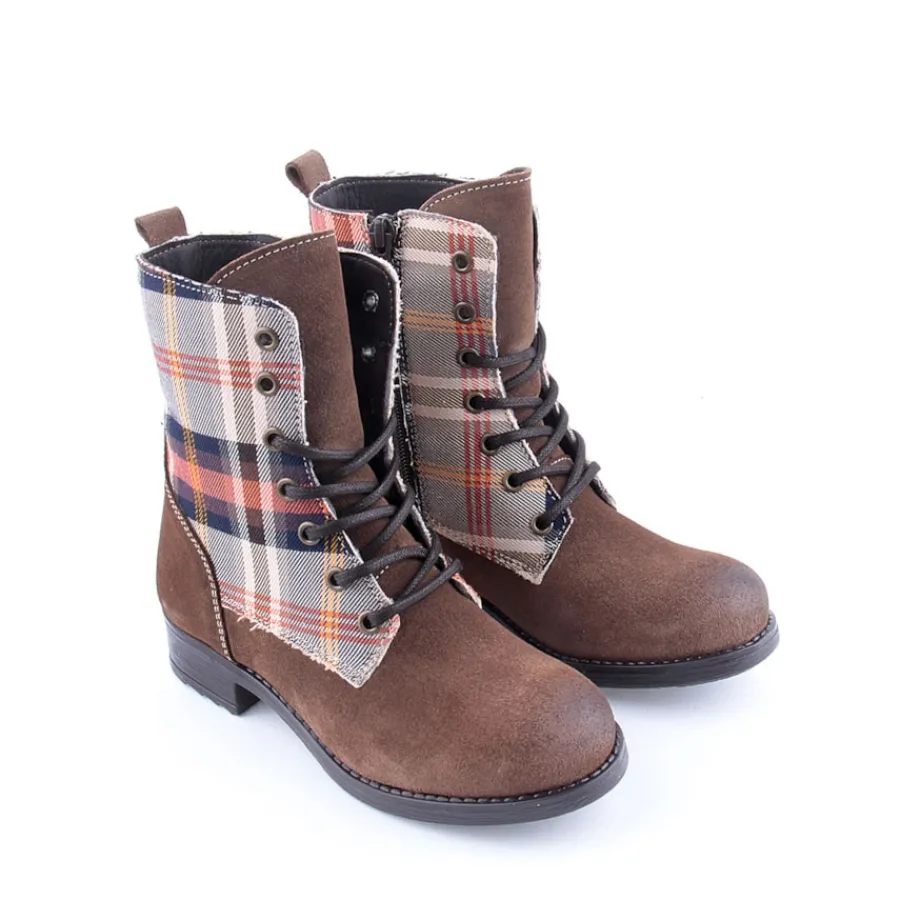 Botim em pele para criança. Disponível nas cores azul, camel e taupe.