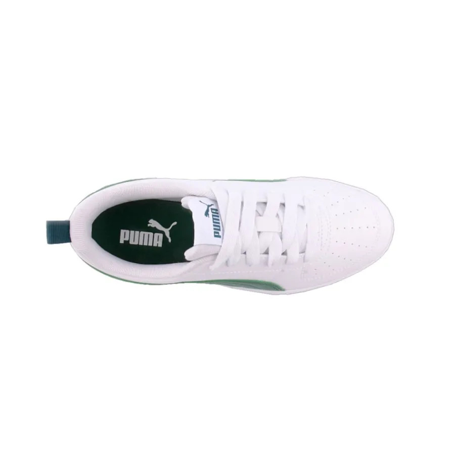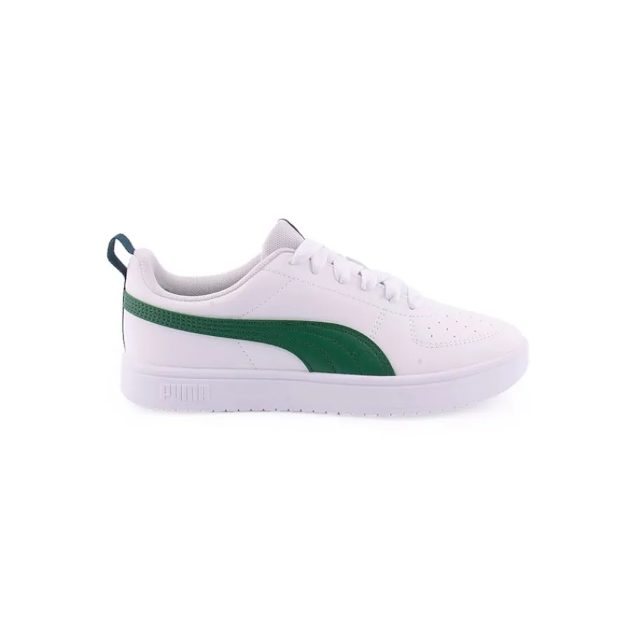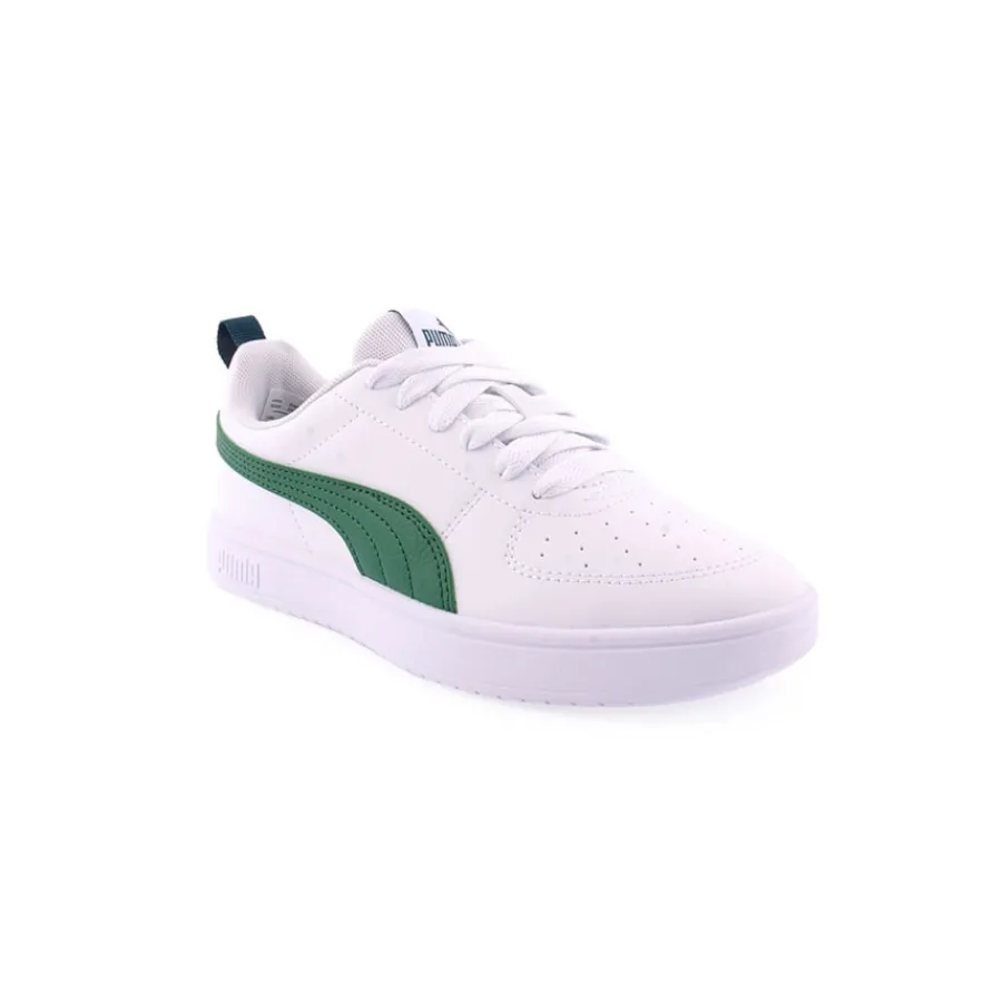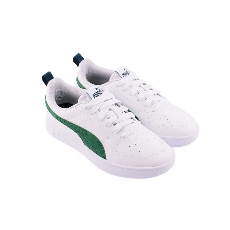 As Puma Rickie representam um visual intemporal, mas moderno e minimalista. A parte superior mantém-se fiel ao ADN da PUMA com pele sintética, marca às riscas e pormenores de perfuração na zona do peito do pé. Um pormenor de cinta no calcanhar que inclui um laço tornará o seu peito do pé fácil e confortável. O design oferece um aspeto limpo com as letras PUMA na lateral.