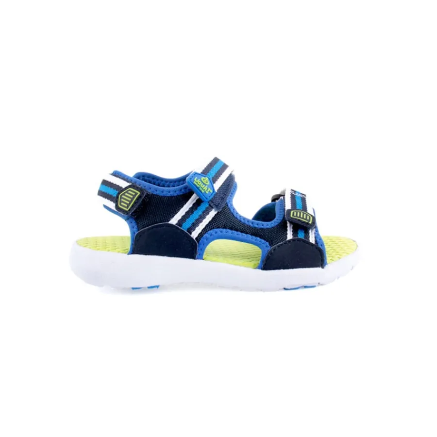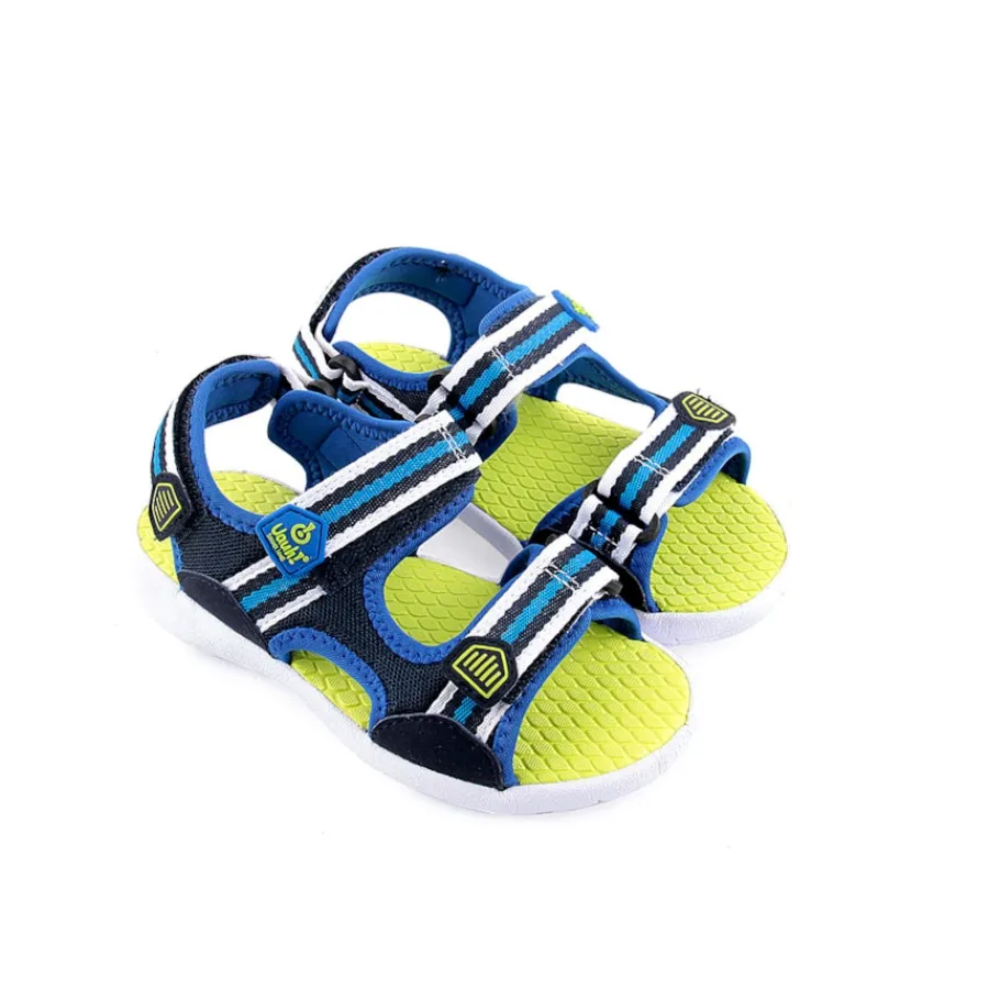 Sandália unisexo para criança. Disponível nas cores fuxia e azul.