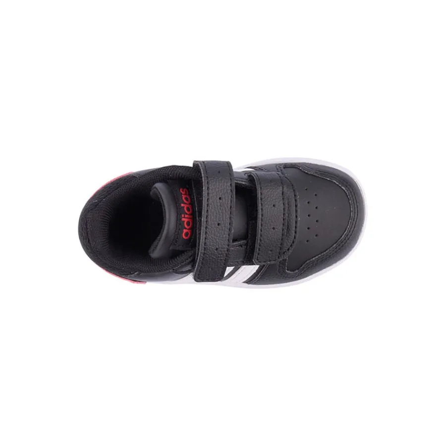 Para futuros torcedores. Estes sapatos infantis infundem o DNA do basquete em um visual limpo para o dia a dia. Ele tem cabedal em couro com detalhes em mesh e as Três Listras brilhantes nas laterais. As alças de velcro facilitam a colocação e retirada.