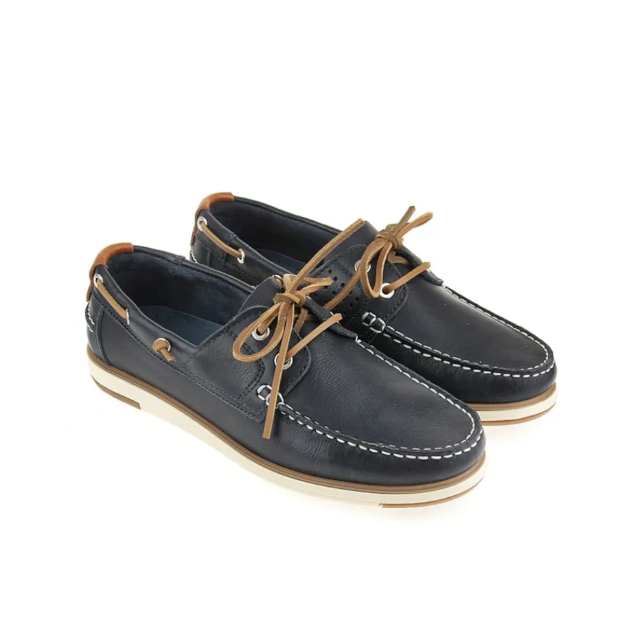 Sapato de vela para homem em pele. Disponível nas cores azul e camel.