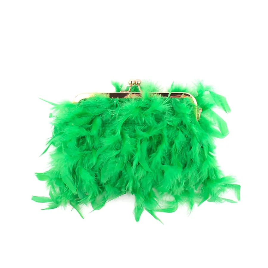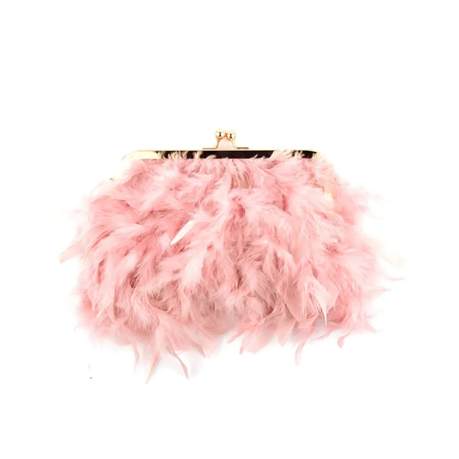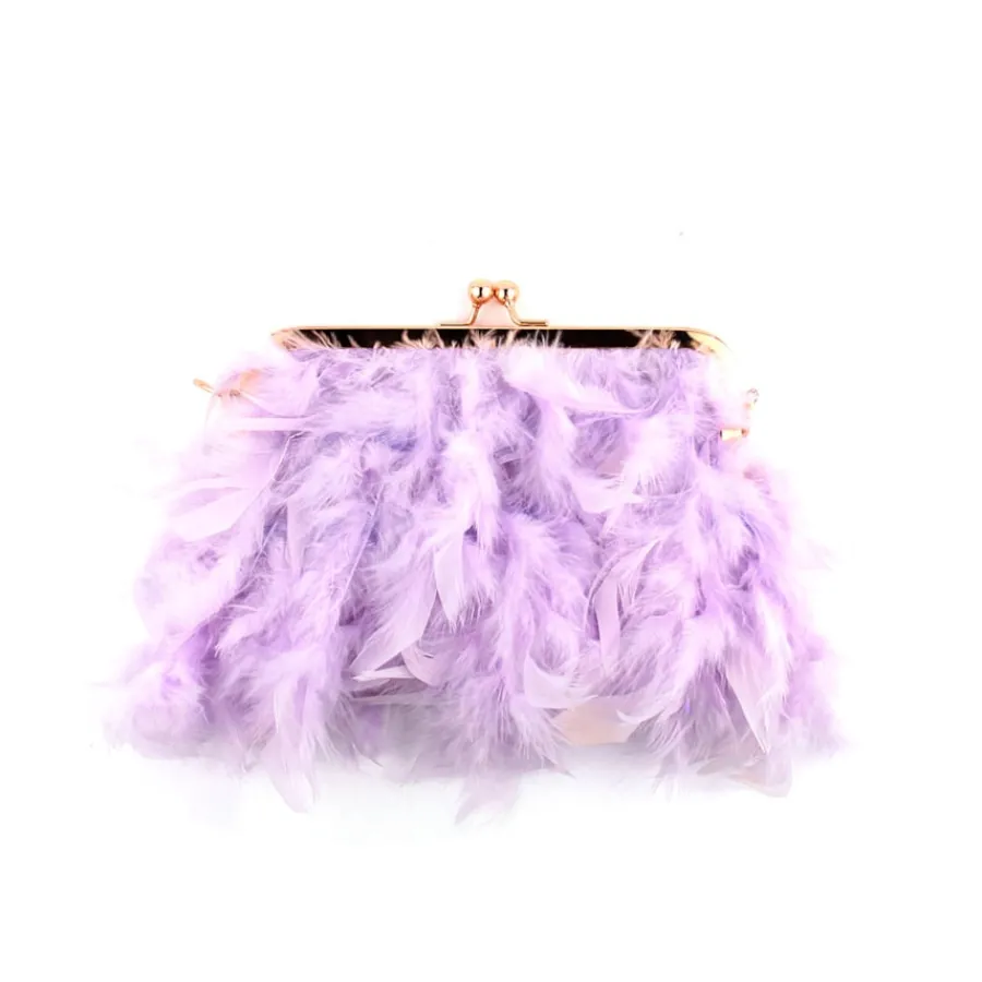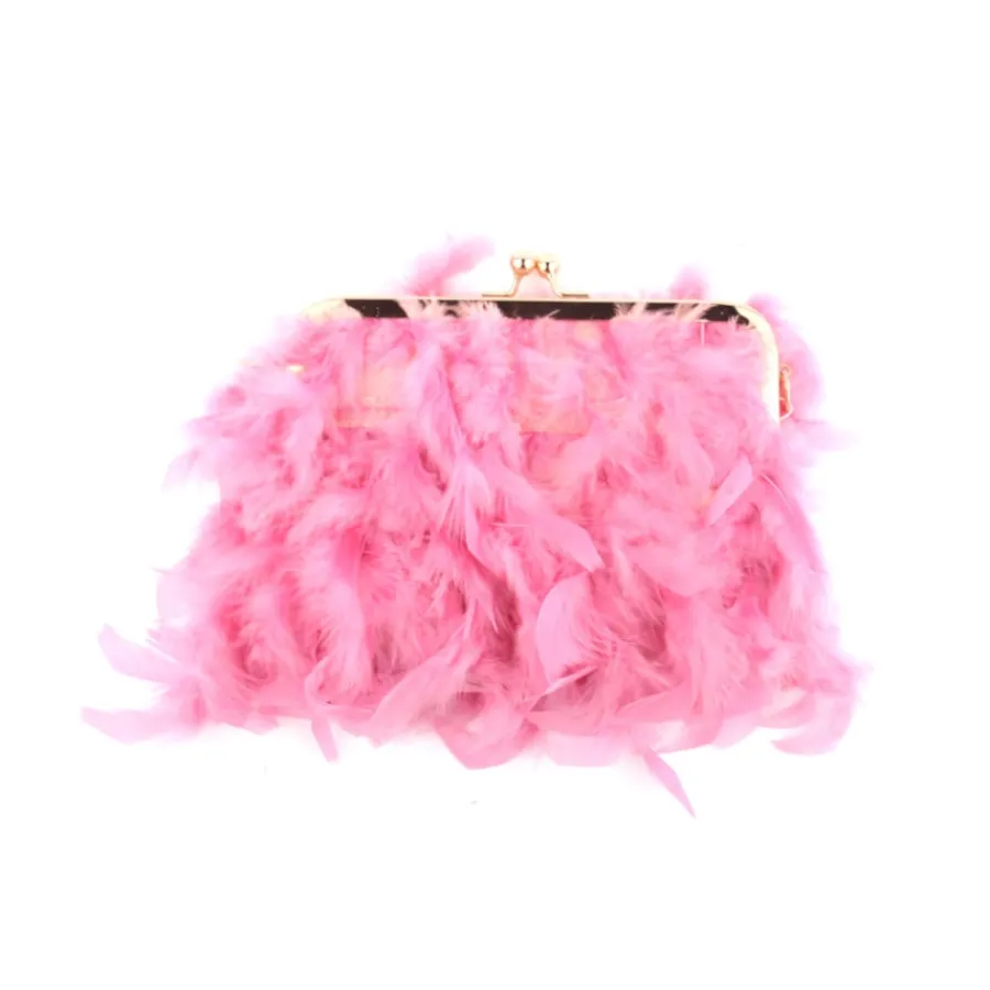 Pochete para senhora com plumas. Alça com pérolas.