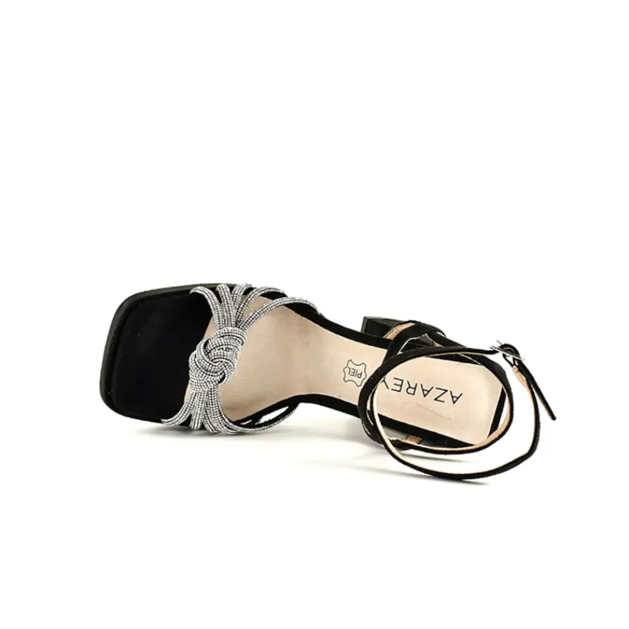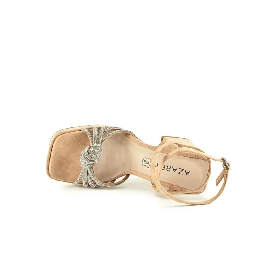 Estas sandálias de plataforma serão as suas favoritas neste verão, o seu desenho de tiras de strass com nó na parte superior irão dar mais personalidade aos seus looks. O seu fecho de fivela no tornozelo dá-lhe o suporte perfeito.Estas sandálias de senhora com strass, para além de muito versáteis, são super confortáveis devido ao salto largo e plataforma à frente. Asseguramos-lhe que este verão não os vai querer tirar. Palmilha de couroAltura do salto 11,5 cm aproximadamenteAltura