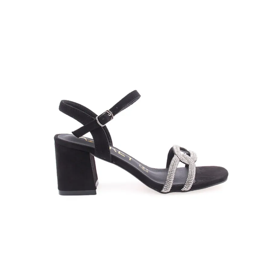 Procura umas sandálias cómodas mas atrativas para uma festa ou o seu próximo evento noturno?Você veio ao lugar certo, essas sandálias de salto quadrado com design superior de strass as tornam únicas. Salto com 7cm de altura.