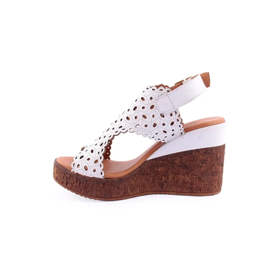 Sandália em pele, com salto em cunha para senhora. Salto com 10cm de altura.