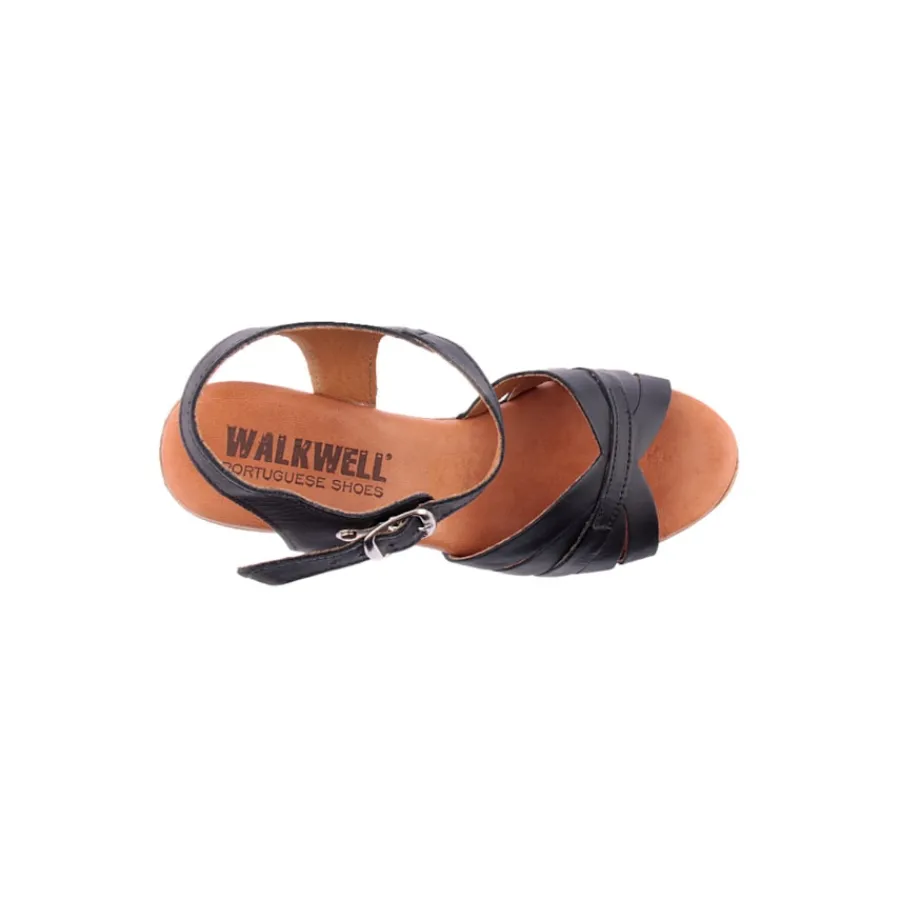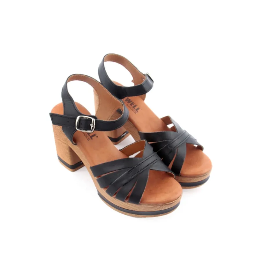 Sandália em pele para senhora. Salto com 8cm de altura aproximadamente.