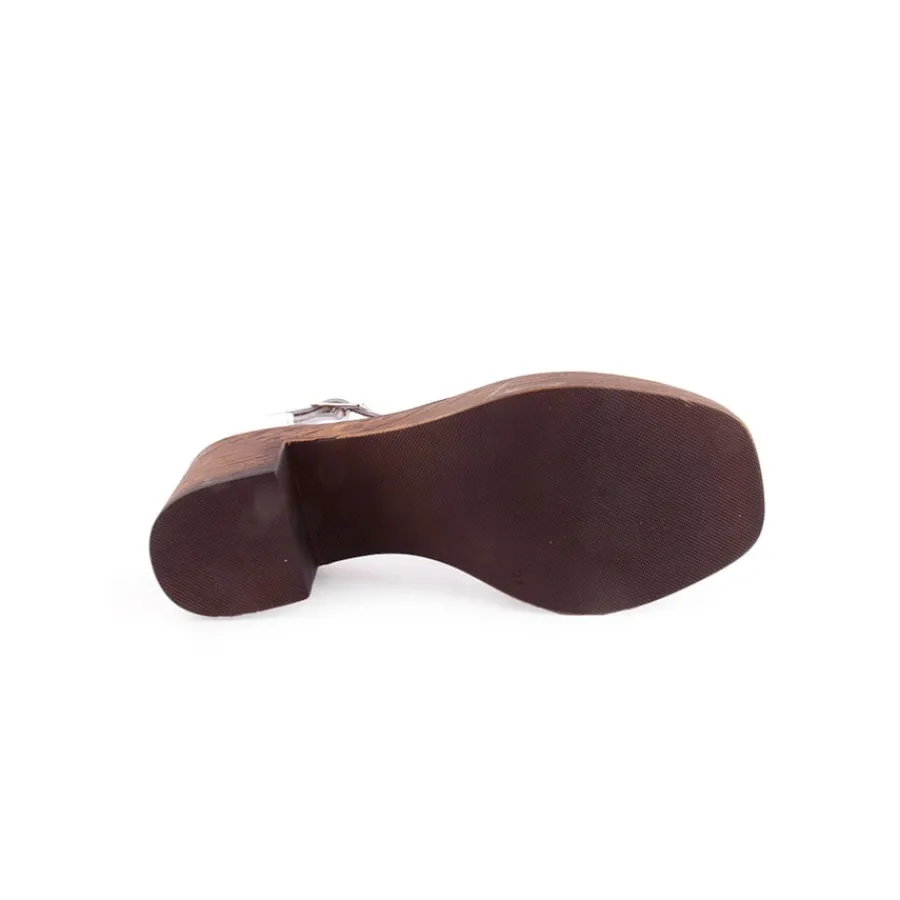 Sandália em pele para senhora. Salto com8,5cm de altura.