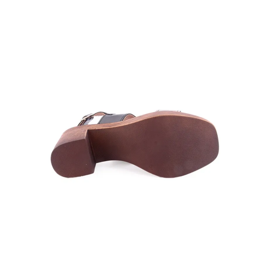 Sandália em pele para senhora. Salto com 8,5cm de altura.