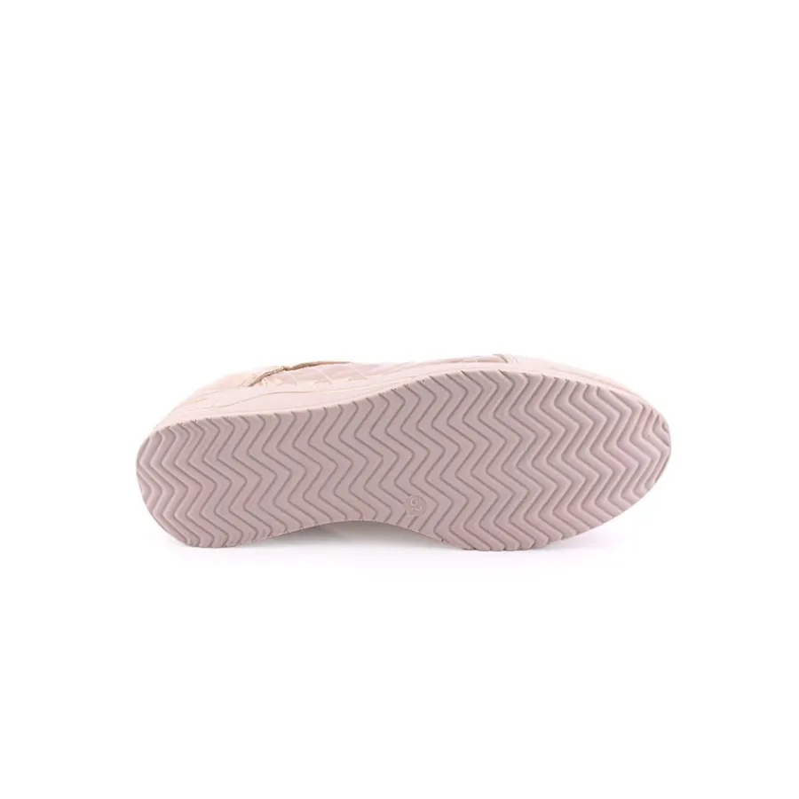 Sapato desportivo com salto em cunha, em pele para senhora.