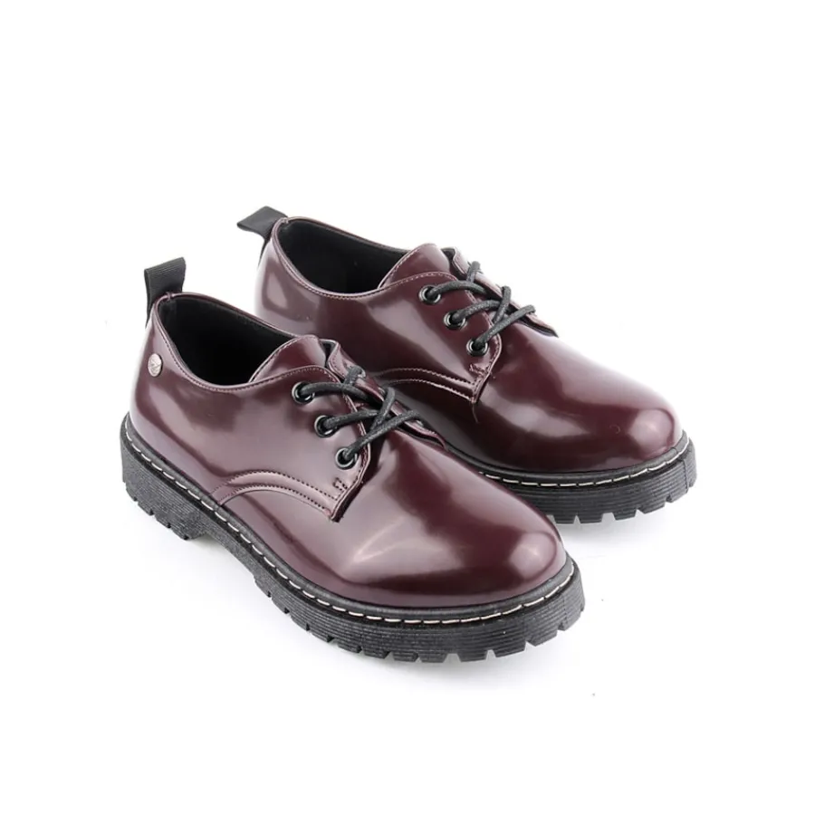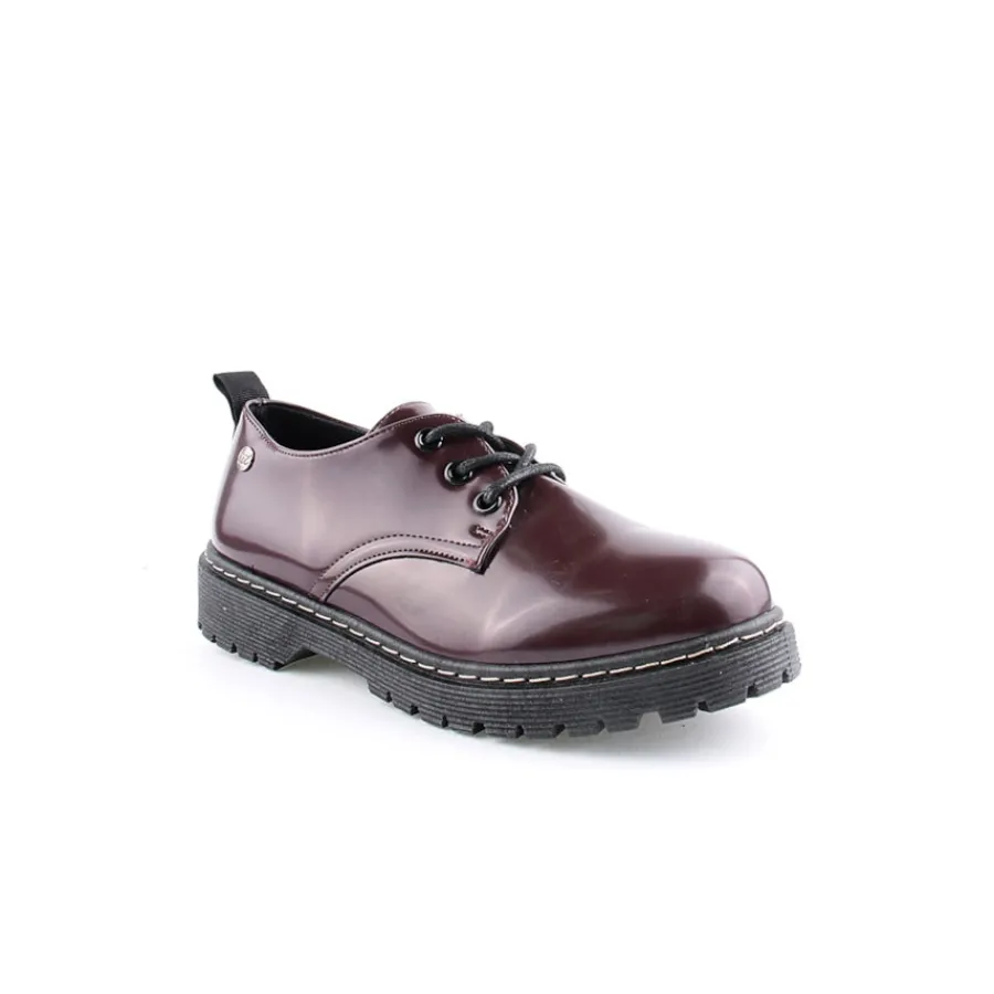 Sapato com atacadores para senhora. Disponível nas cores bordo e preto.