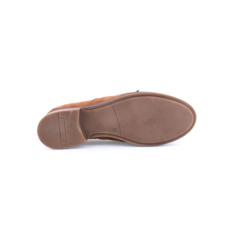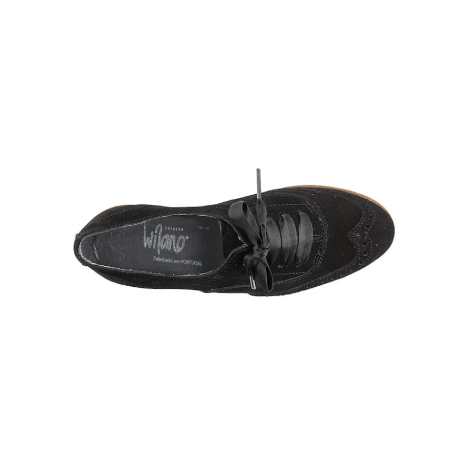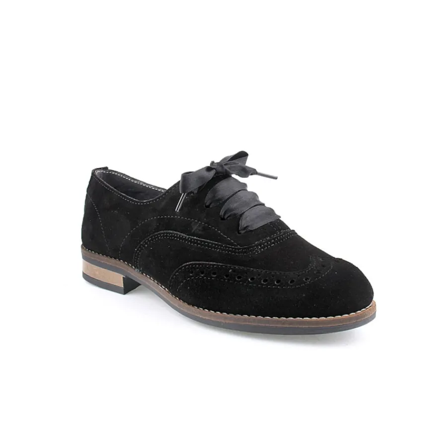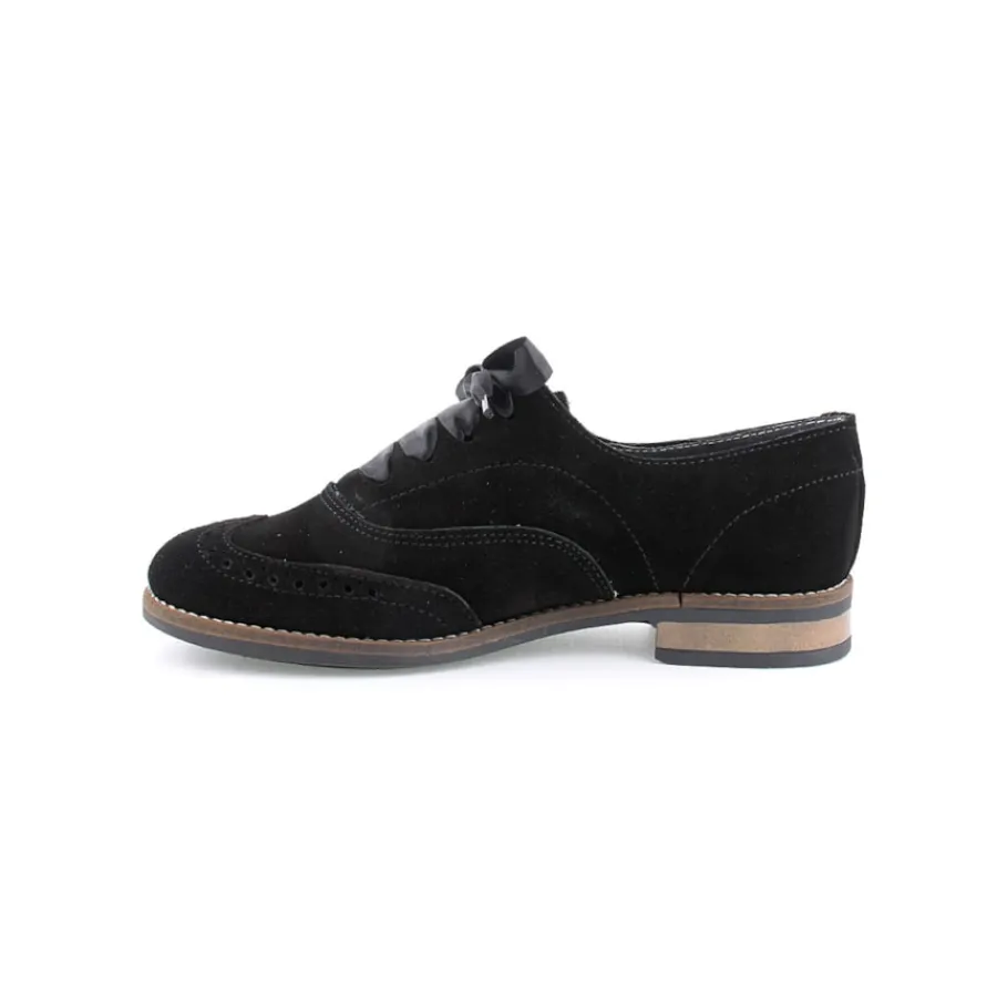 Sapato em pele para senhora com atacadores em fita. Disponível nas cores preto e camel.