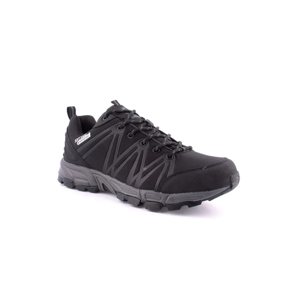 Calçado de homem para caminhadas. Calçado à prova de água que oferece igualmente um apoio e uma versatilidade superior dentro e fora de trilhos.