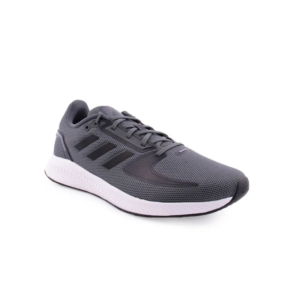 Ténis de iniciação adidas Runfalcon 2.0 projetados em cinza com malha respirável sem costuras graças aos seus reforços sintéticos. São confortáveis, leves e oferecem boa aderência graças à sua sola de borracha.