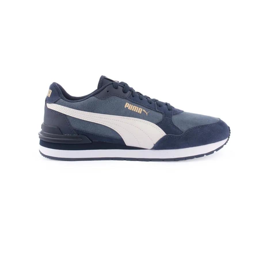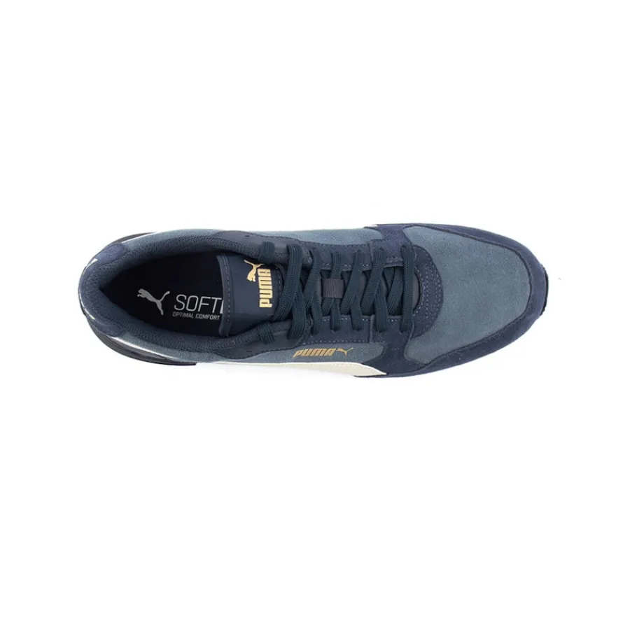 Os calçados masculinos Puma são a escolha ideal para o uso diário. Parte superior durável em couro camurça natural e painéis sintéticos. O laço clássico facilita o deslizamento e oferece estabilidade. Acabamento modular do calcanhar. A entressola leve em EVA e a palmilha SoftFoam+ garantem conforto. Tratamento de borracha da sola. Passo aderente.
