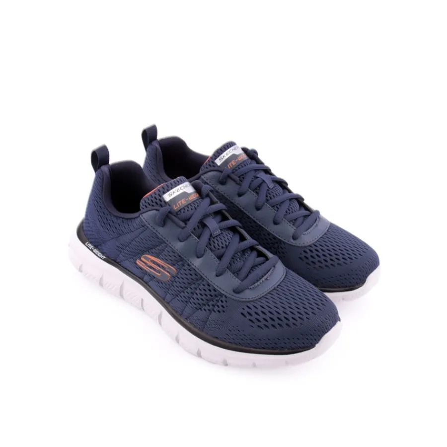 Treina com um conforto leve e fresco e estilo desportivo com o sapato Skechers Track – Moulton. Esta sapatilha com atacadores desportiva tem uma parte superior em rede e material sintético com uma palmilha viscoelástica almofadada.