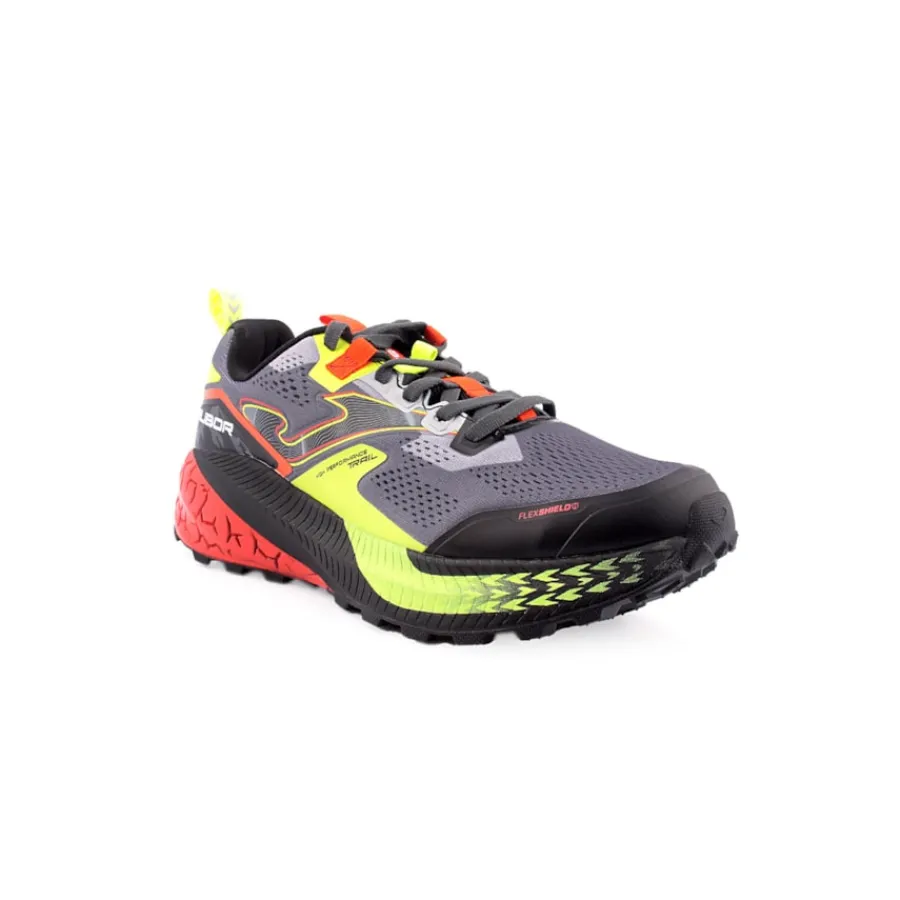 Os ténis Joma TK.Rase são trail e desenvolvidos para treinar e competir em terrenos acidentados, onde o corredor precisa de amortecimento extra.