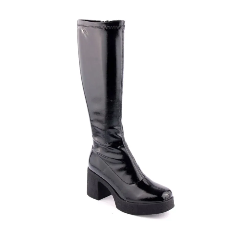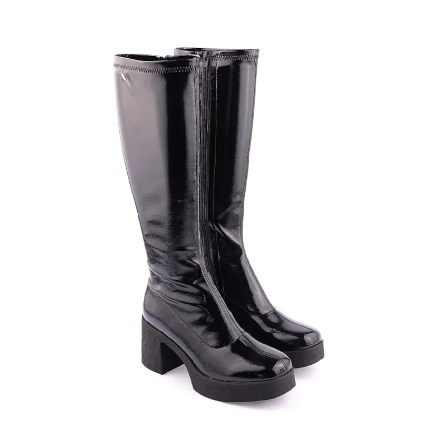 Bota de cano alto para senhora. Salto com 8cm de altura.