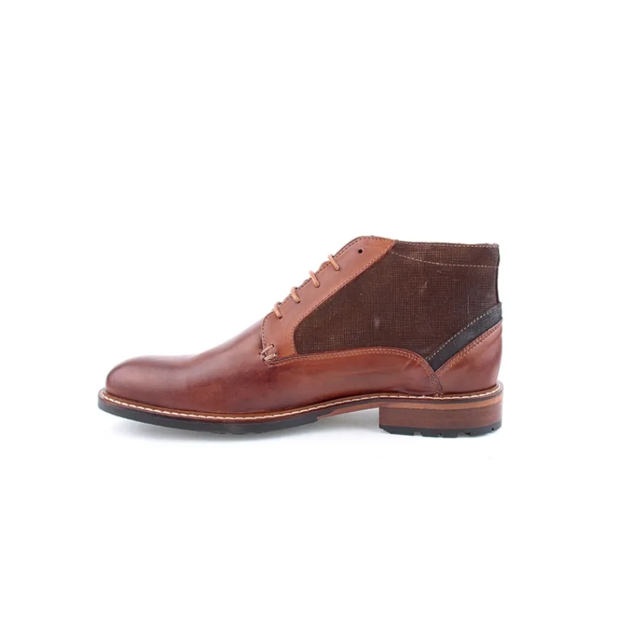 Botim em pele para homem. Disponível nas cores camel e azul.