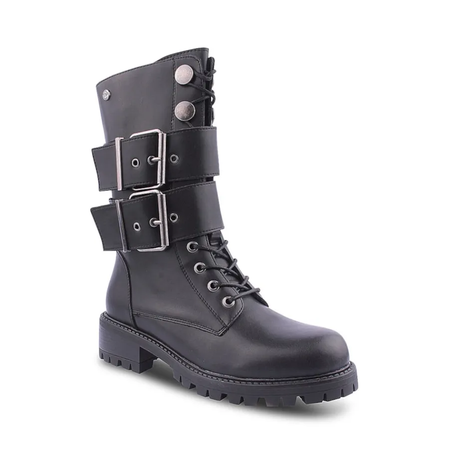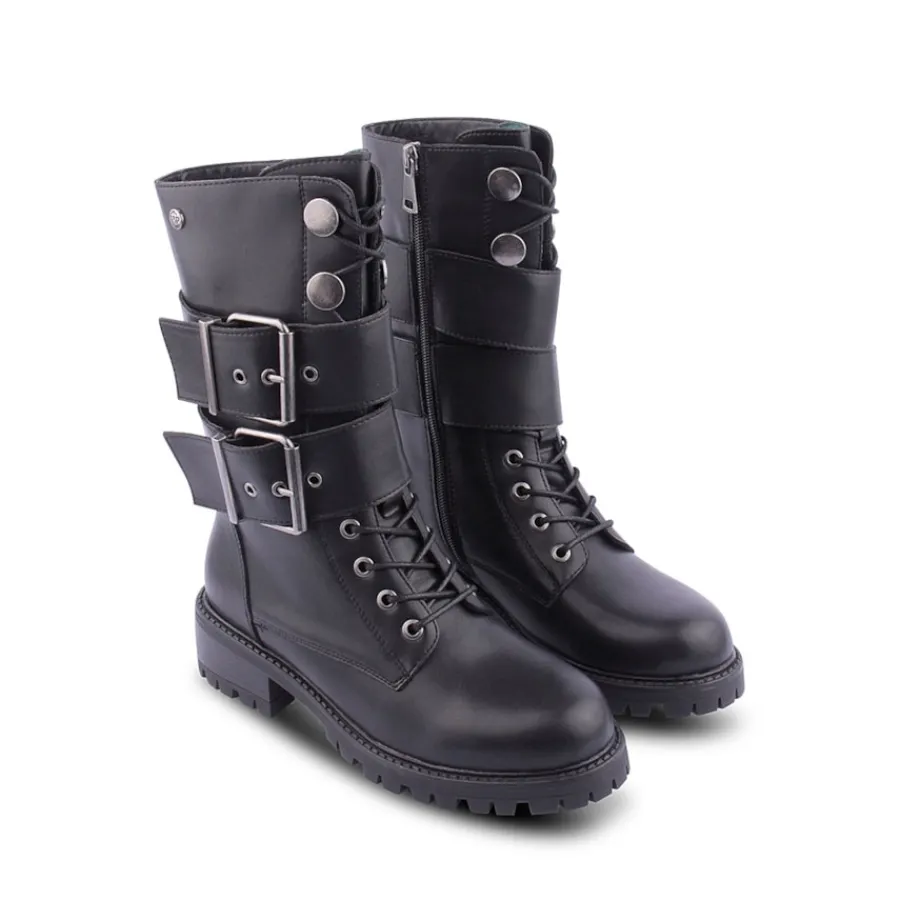 Bota em pele, estilo militar para senhora.