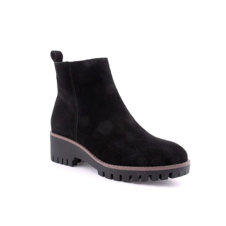 Botim em camura para senhora. Salto com 5,5cm de altura.