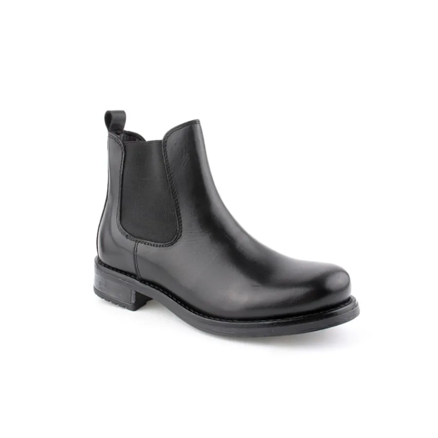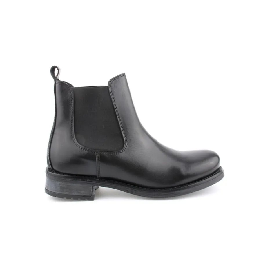 Botim em pele para senhora. Disponível nas cores preto e camel.