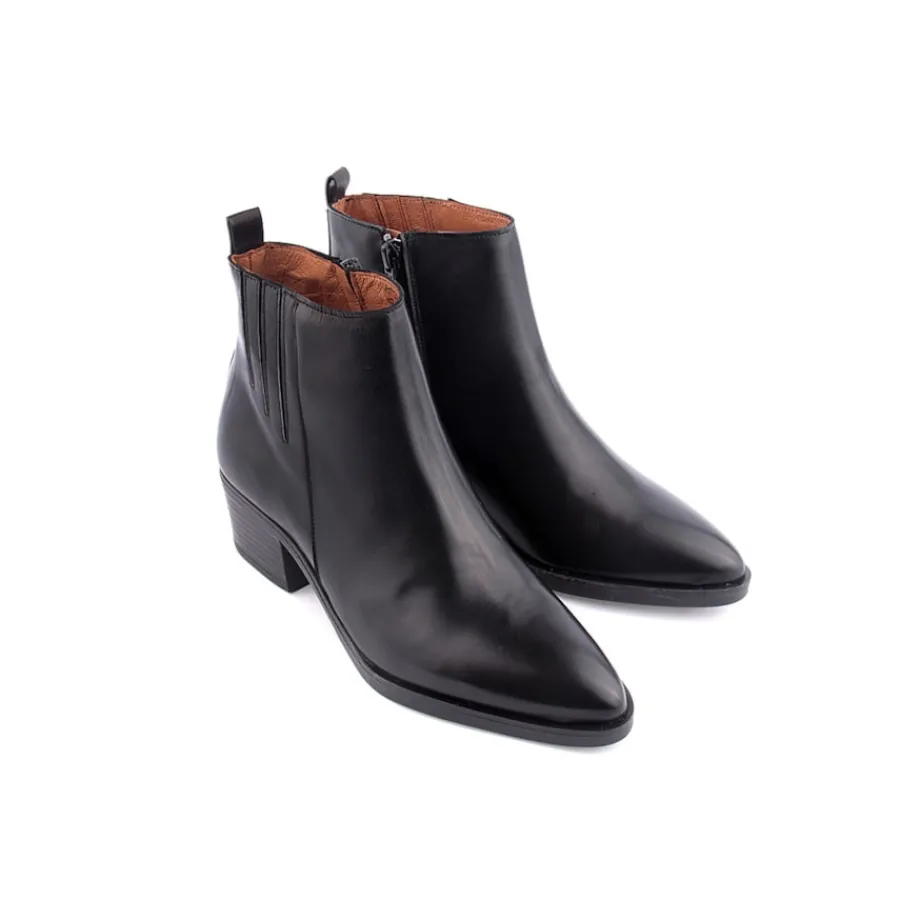 Botim em pele para senhora. Salto com com 6cm de altura.