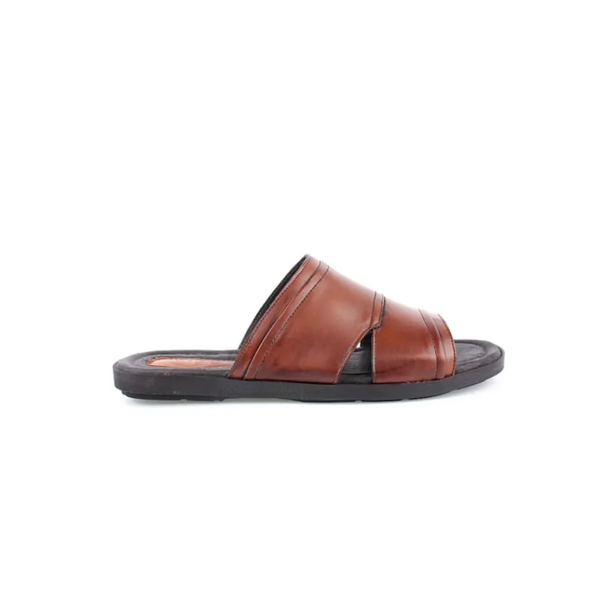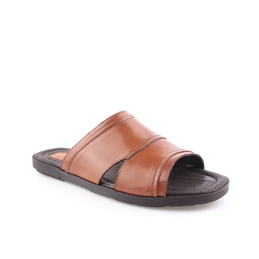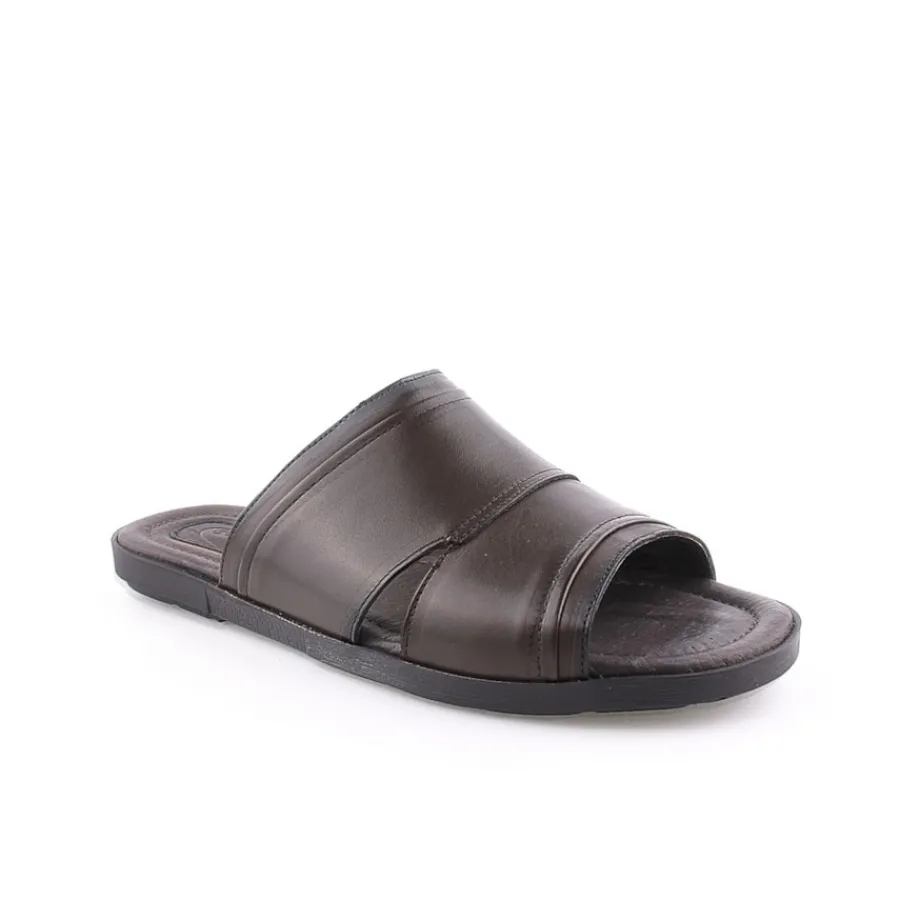 Chinelo para homem em pele. Disponível nas cores castanho e preto.