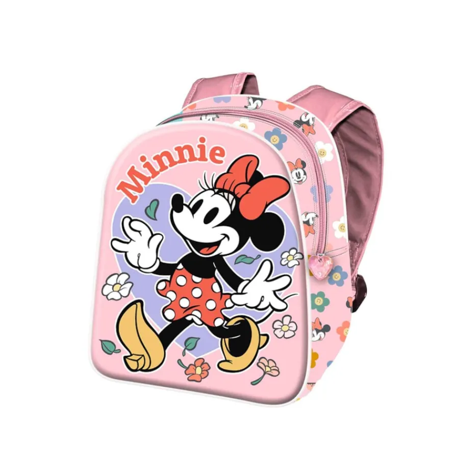 Mini mochila Minnie 3D. Mochila pré-escolar com frente em relevo 3D e compartimento único com fecho.
