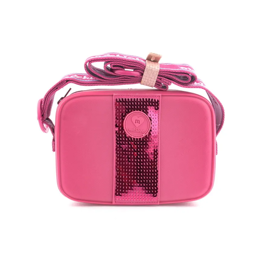A grande tendência da moda chegou com a Moleca na versão Kids na nova Bolsa Infantil Molekinha 20019.6! Ideal para dar aquela chave de ouro nos looks das pequenas, o modelo é confeccionado em material sintético resistente, repartição única com espaço interno suficiente para que possam carregar seus itens, alça única lateral, fechamento em zíper, aplicação em lantejoula, além do logo da marca Molekinha na parte frontal . Perfeita né ?
