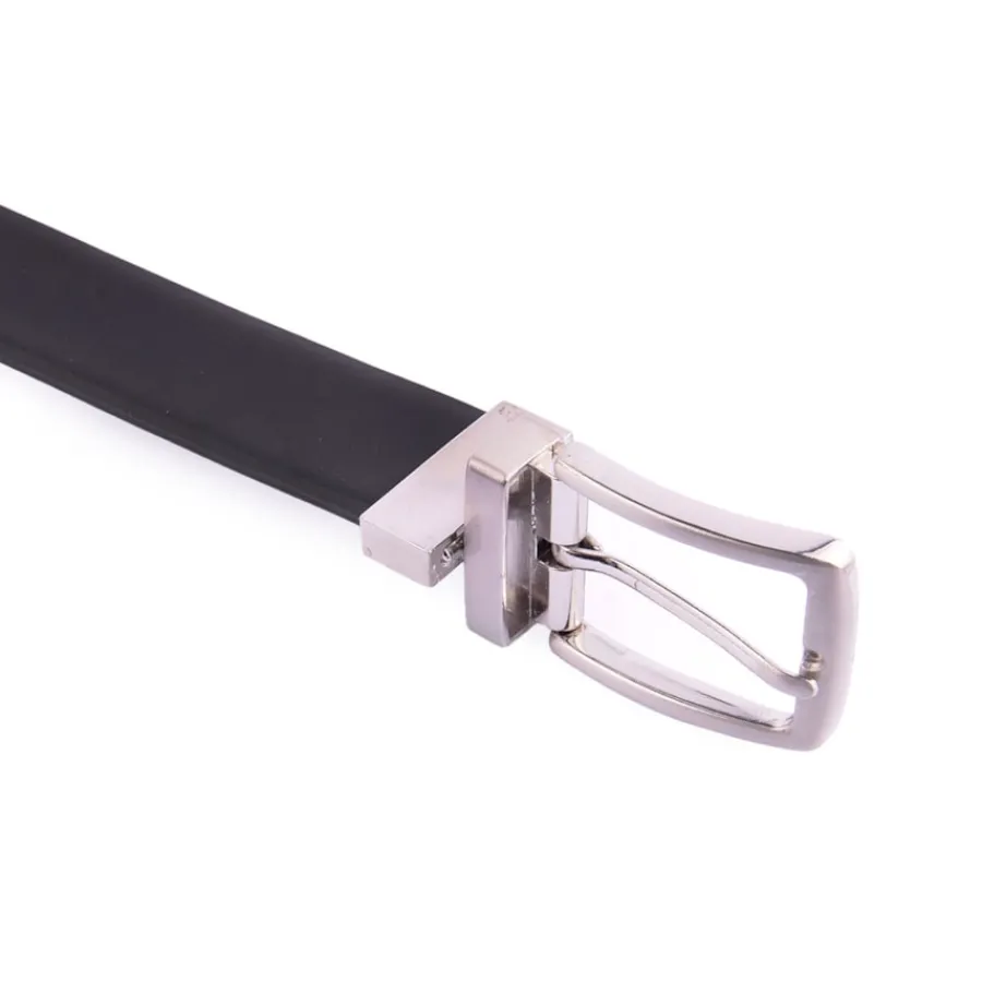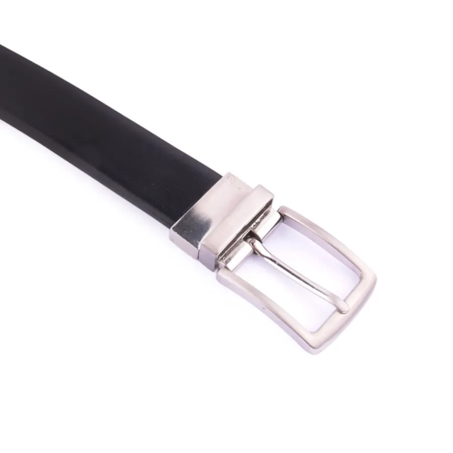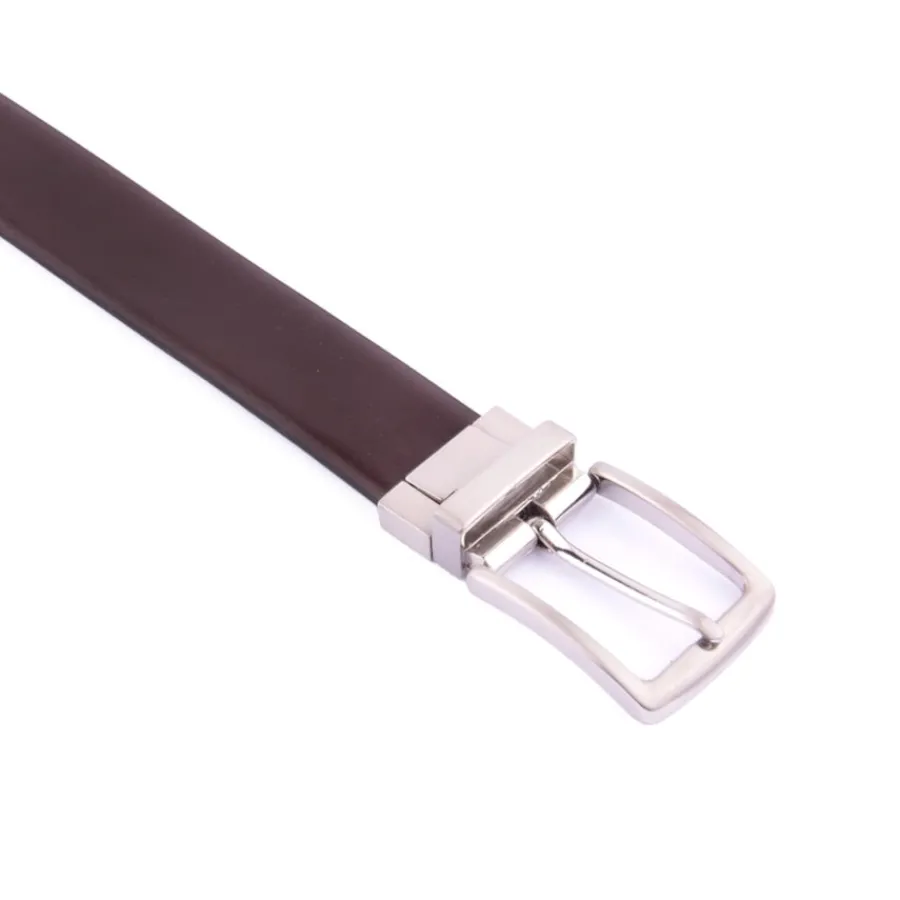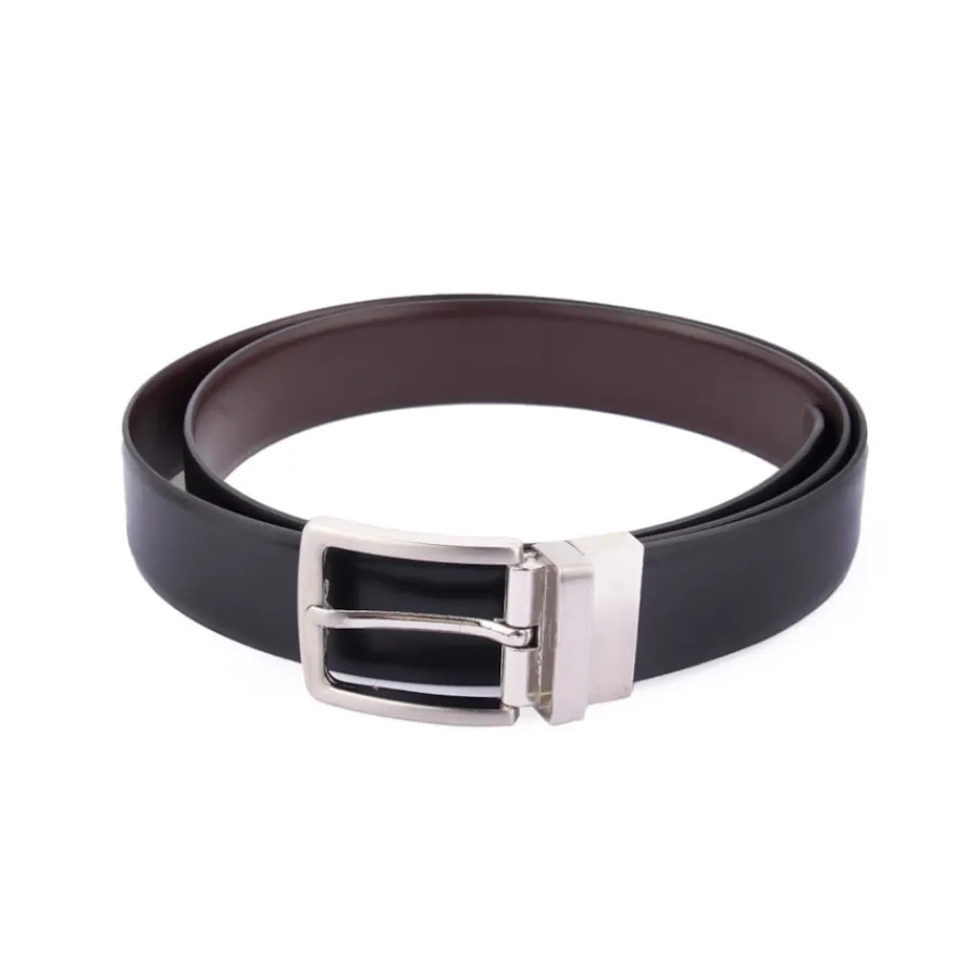 Cinto reversível em pele. De um lado preto, de outro castanho.