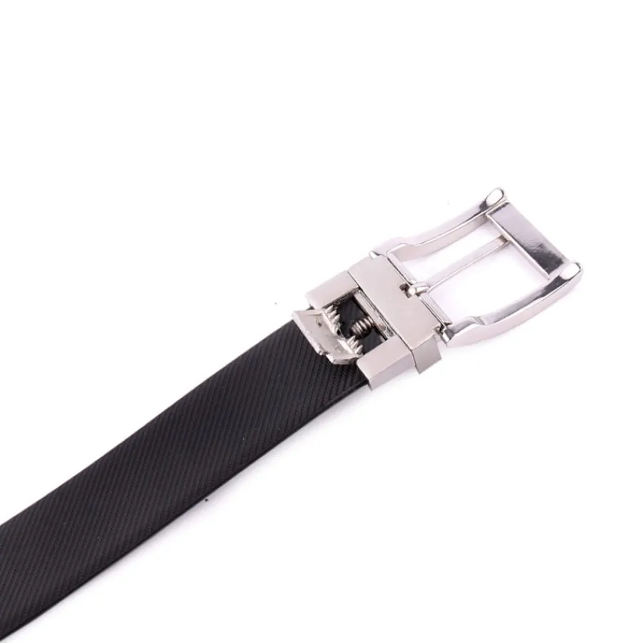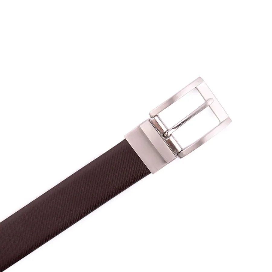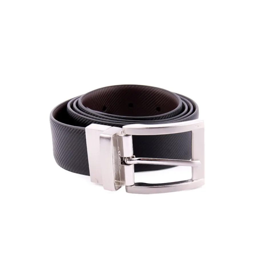 Cinto reversílvel, de um aldo preto de outro castanho, em pele. Largura 33mm.