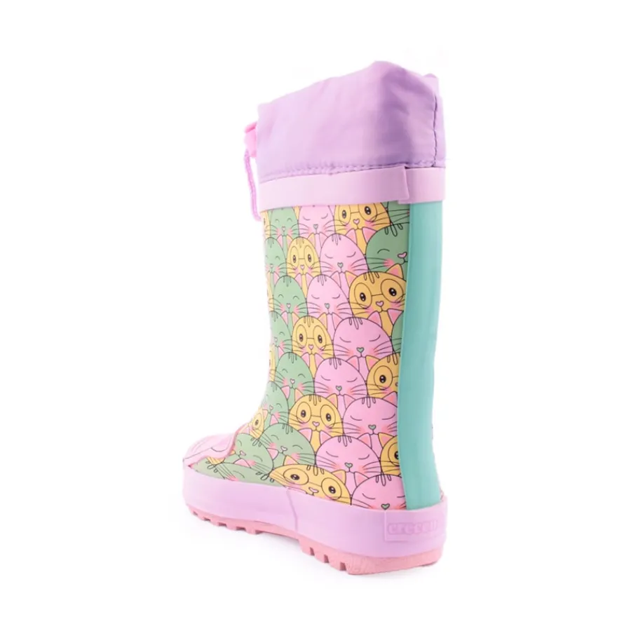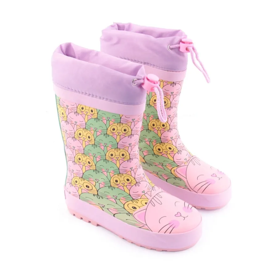 Galochas com print de gatinhos, para criança.