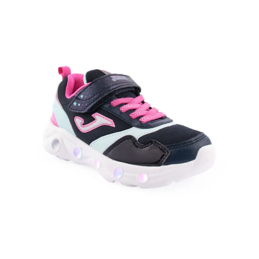 Estes sapatos Joma Star 2303 darão à sua filha tudo o que ela precisa para o dia a dia. A parte superior é fabricada em Nylon e TPU de alta qualidade e duradoura. Possui um fecho de velcro e atacadores elásticos para garantir um apoio ótimo. Entressola com secções de Phylon macio, concebidas para se adaptarem à flexibilidade do pé e proporcionarem muito conforto. Além disso, inclui luzes que se activam com a batida do pé.