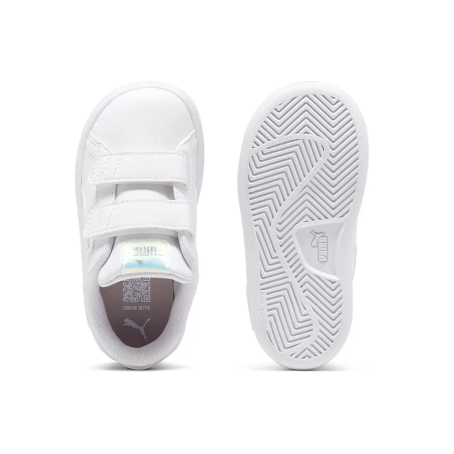 O PUMA Smash 3.0 é a próxima geração da icônica franquia PUMA Smash. Feita para incentivar a diversão e a brincadeira, esta coleção de calçados e vestuários se inspira no futebol — e na energia sem limites das crianças. Os designs apresentam uma marca ousada e gráficos divertidos retirados dos arquivos da PUMA e do mundo do futebol. Estes tênis vêm com detalhes holográficos fofos.