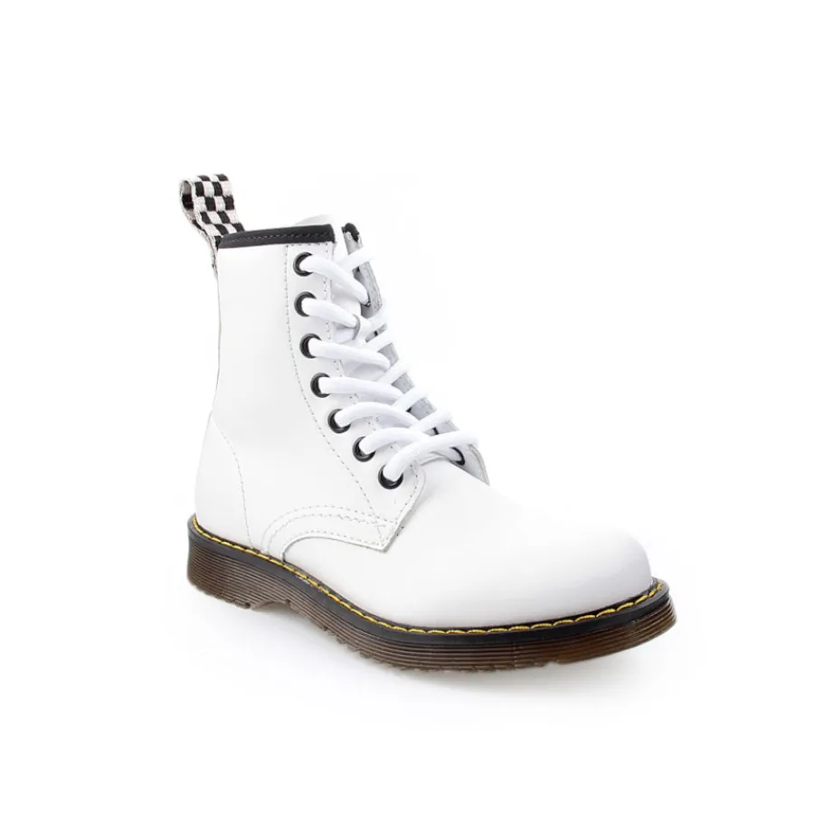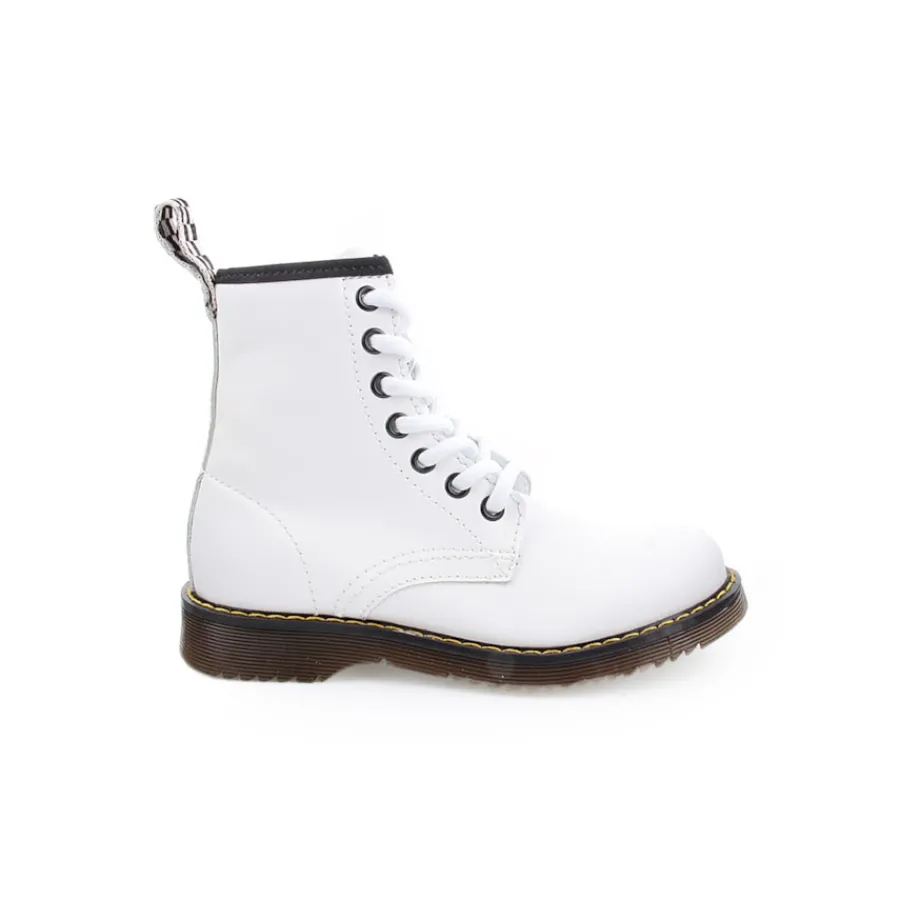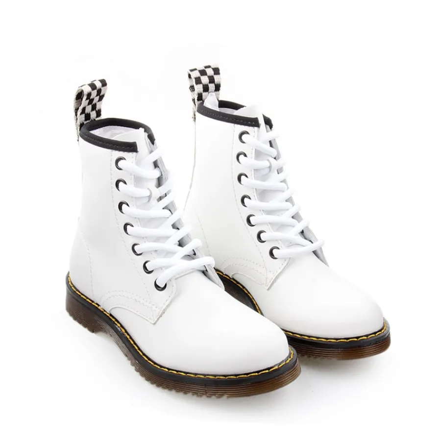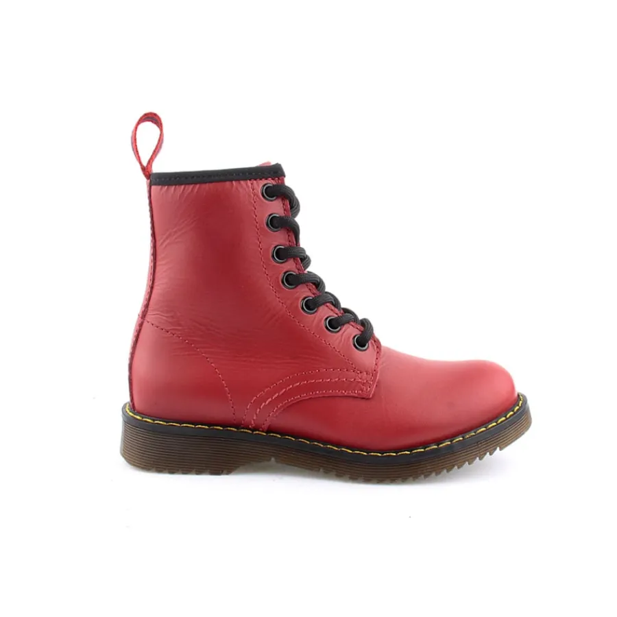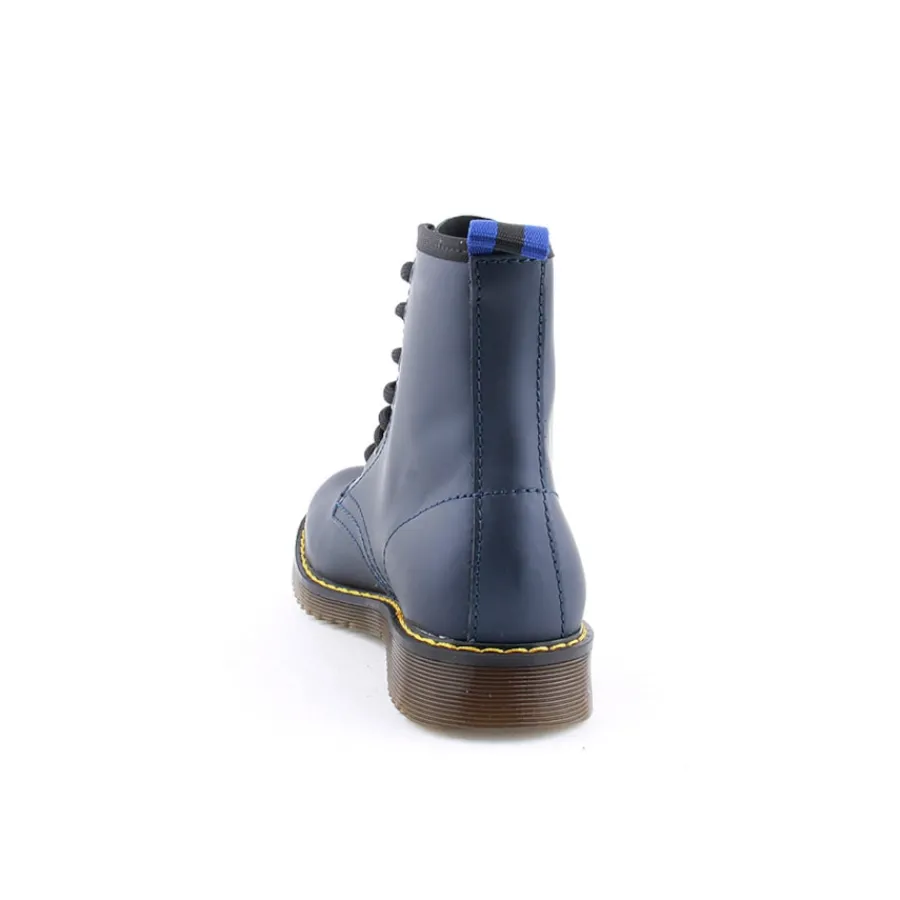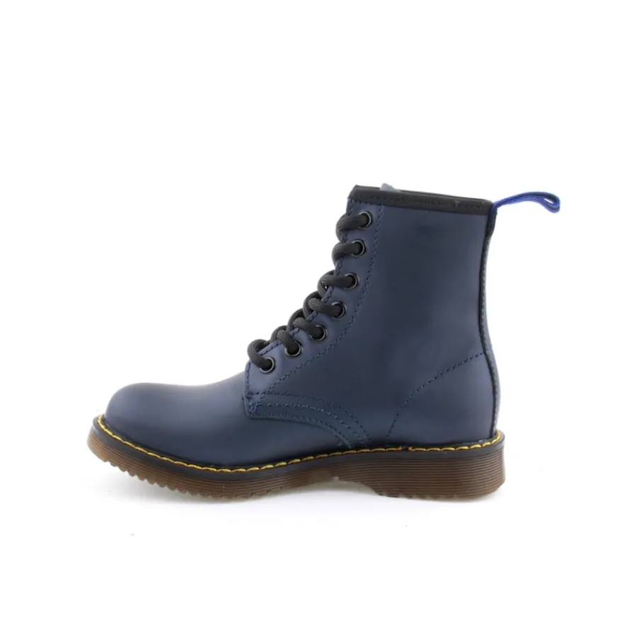Bota em pele, estilo militar para criança. Disponível nas cores azul, branco e vermelho.
