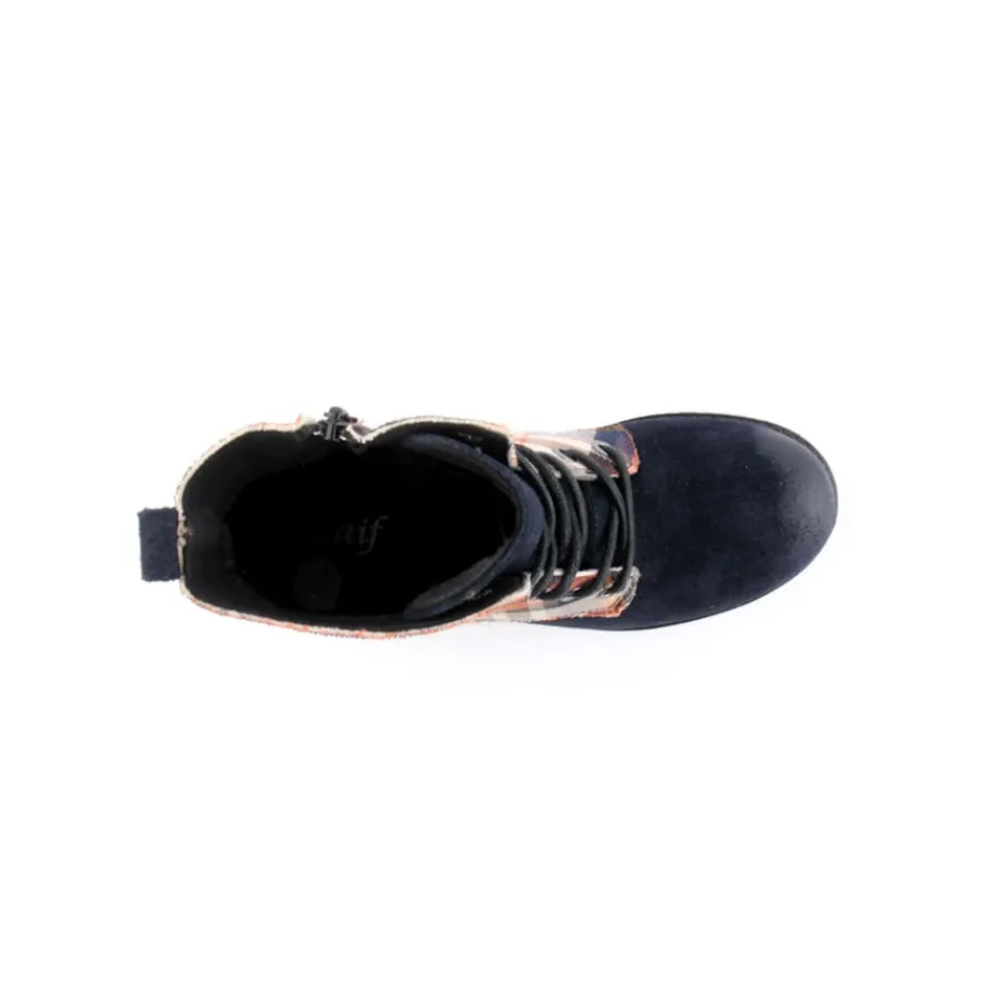 Botim em pele para criança. Disponível nas cores azul, camel e taupe.