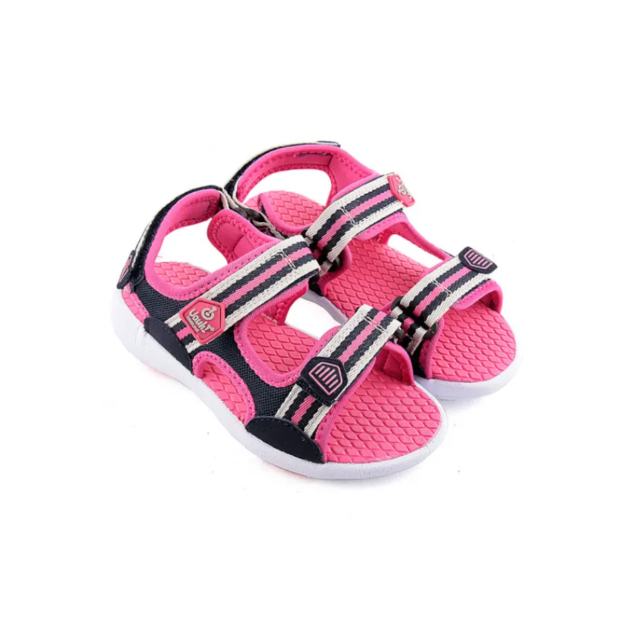 Sandália unisexo para criança. Disponível nas cores fuxia e azul.