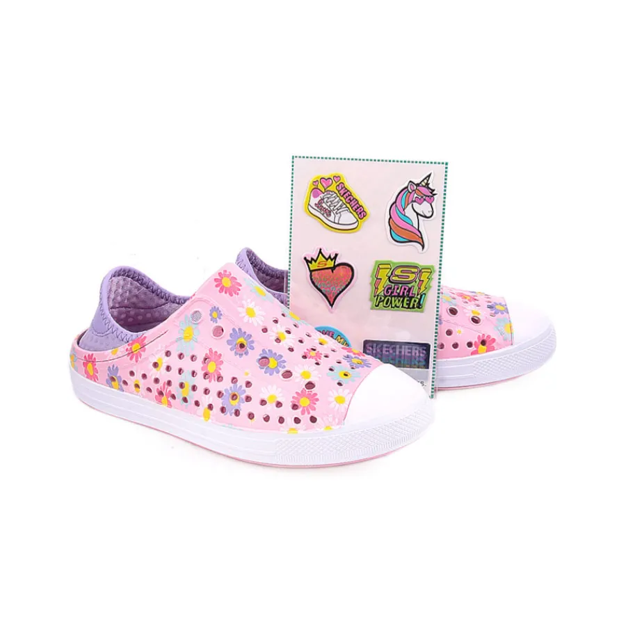 Mantém o teu estilo de tempo quente fresco e bonito, com o sapato SKECHERS Guzman Steps – Hello Daisy. Parte superior em EVA numa sapatilha slip-on casual com padrão floral de margaridas integral, detalhes esculpidos e perfurações refrescantes. Rebordo em neopreno flexível suave, para conforto adicional.