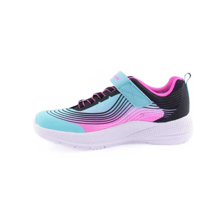 Mantém-te ativo com um estilo divertido e colorido, usando Skechers Microspec Advance. Este design desportivo tem a parte superior em malha multicolor com revestimentos de impressão tátil, atacadores elásticos, uma tira em velcro ajustável no peito do pé e palmilhas confortáveis almofadadas.