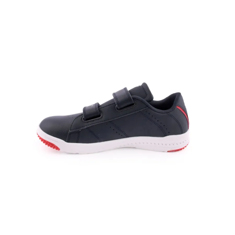 Sapatilhas escolares para menino. O design clássico e versátil deste modelo torna-o perfeito para usar com o uniforme escolar. Além disso, são umas sapatilhas muito cómodas, versáteis e resistentes, sendo indicadas para qualquer atividade desportiva, incluindo a educação física. Destacam-se ainda pela facilidade com a qual podem ser limpas, para além do seu fabrico em material resistente à abrasão e ao desgaste.