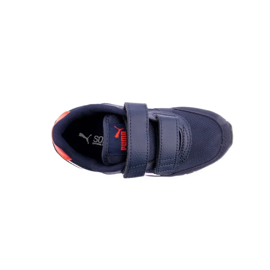 Para que o teu filho possa fazer tudo, trazemos para ti os ténis Puma St Runner V3 em azul marinho. Projetadas com ajuste de velcro para um ajuste mais fácil e rápido. Apresentam uma entressola em EVA confortável para proporcionar amortecimento e conforto nos teus passos.